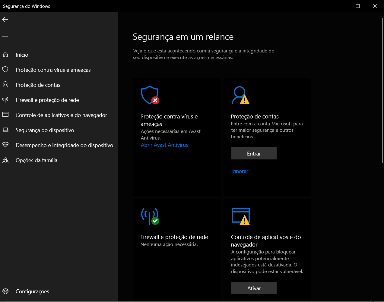 Configurações → Privacidade e Segurança → Segurança do Windows