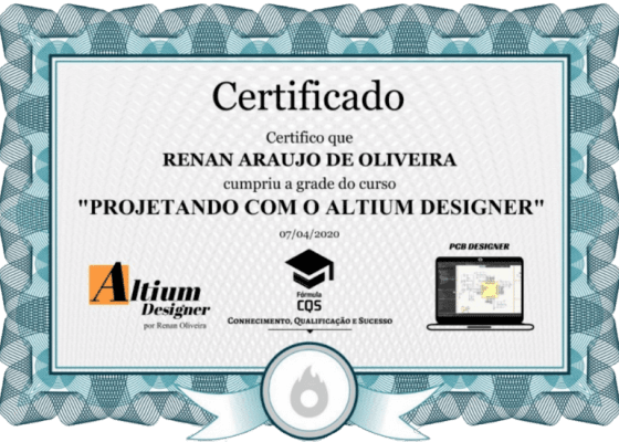 “Gostei muito do curso. Sempre quis aprender o Altium. Usava só o Proteus. Achei o Altium bem melhor! O curso ensina passo a passo. Recomendo!”